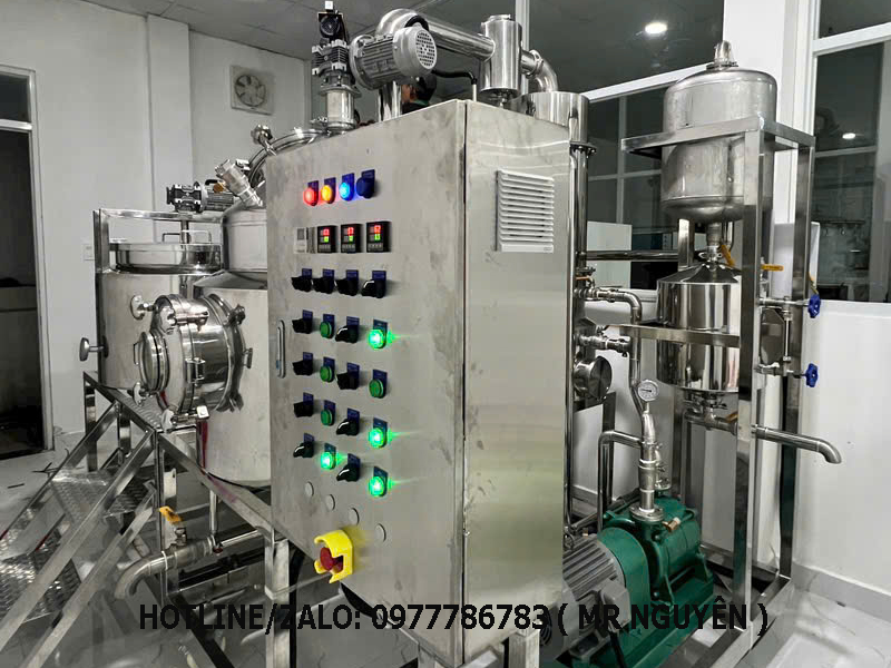 Máy cô đặc chân không là giải pháp hiện đại dùng áp suất chân không để hạ thấp nhiệt độ sôi, từ đó giúp dung môi bay hơi nhanh mà vẫn giữ nguyên dưỡng chất, màu sắc và hương vị. Với thiết kế từ inox SUS304 đạt chuẩn an toàn thực phẩm (HACCP, GMP), thiết bị phù hợp mọi dây chuyền dược phẩm — từ chiết xuất cao dược liệu đến chế biến thực phẩm như sữa đặc, nước mắm hay nước ép trái cây. Ưu điểm lớn nhất là khả năng bay hơi nhanh hơn gấp nhiều lần so với cách cô hở truyền thống, đồng thời toàn bộ quy trình được khép kín, giảm rủi ro nhiễm bẩn và tiết kiệm đáng kể năng lượng.